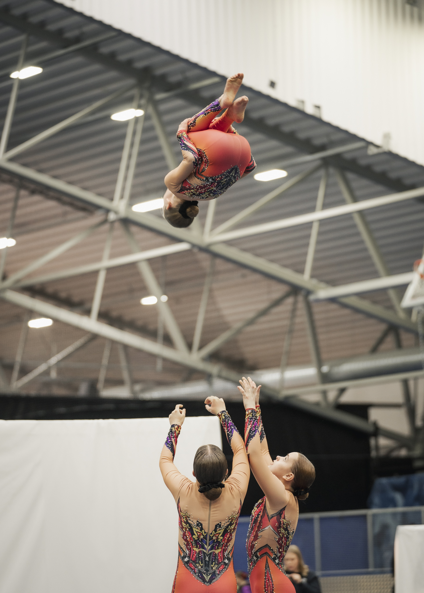 Pidemmälle edetessä voimistelijoille tulee omat roolit: pienimmät nousevat korkeuksiin topin roolissa ja isoimmat nostelevat ja heittelevät joukkuekavereita basen roolissa. Useamman kerran viikossa harjoittelevat ryhmät osallistuvat myös kilpailuihin.